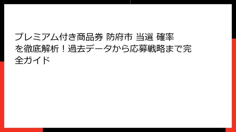プレミアム付き商品券 防府市 当選 確率を理解することで、次回の応募に自信を持てるはずです。