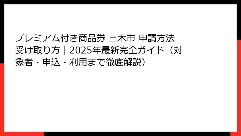このコンテンツは、プレミアム付き商品券 三木市 申請方法 受け取り方の付加価値です。