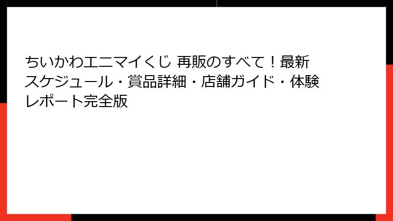 - ちいかわ エニマイくじ 再販の最新スケジュールと販売店舗ガイド