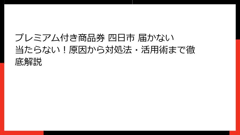 四日市市のプレミアム付き商品券は、地域経済の活性化を目的とした人気の施策ですが、申し込み後に「届かない」や「当たらない」というトラブルに遭遇する方が少なくありません。