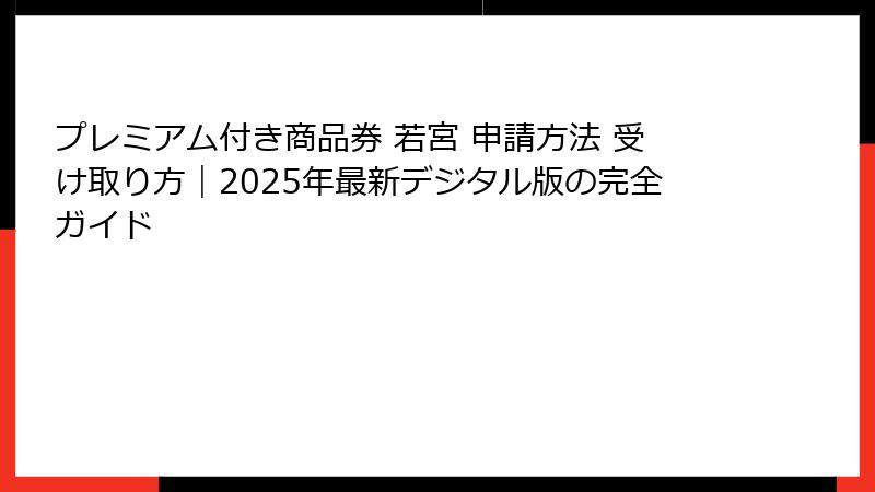 - 若宮プレミアム付き商品券の申請方法:アプリ登録から申し込みまでの完全ガイド
