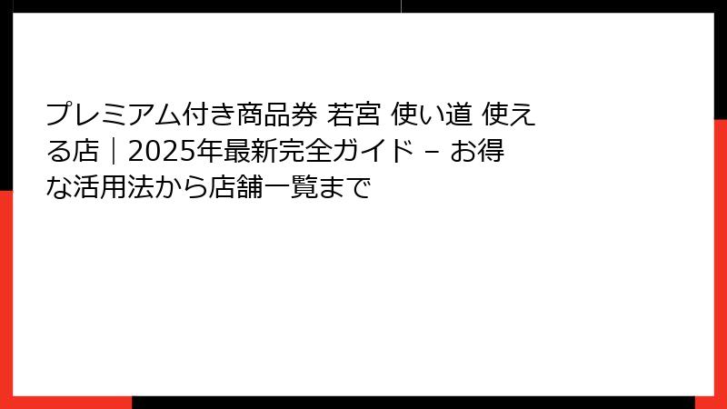 - 若宮プレミアム付き商品券の概要と魅力 – 使い道を探る前に知っておきたい基本情報