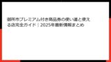 - 御所市プレミアム付き商品券の効果的な利用方法とよくある質問まとめ