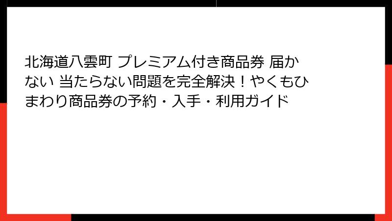1. 北海道八雲町プレミアム付き商品券「届かない」「当たらない」の悩みを解決!最新情報まとめ