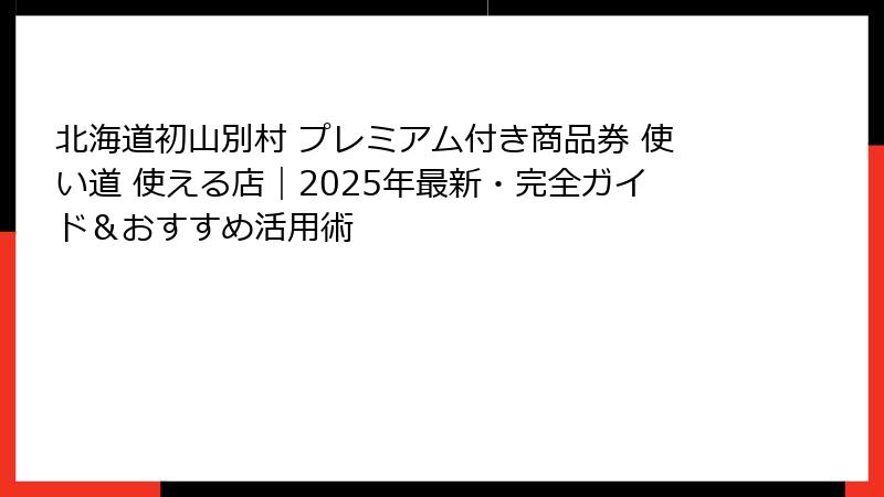- 北海道初山別村プレミアム付き商品券のおすすめ使い道:日常活用から観光まで