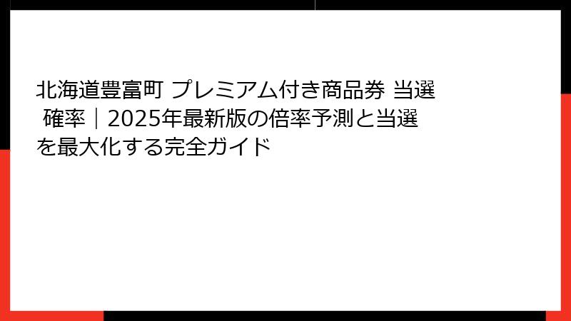 検索キーワード「北海道豊富町 プレミアム付き商品券 当選 確率」にぴったり合う内容をお届けし、読者の皆さんが実際に応募する際の参考になるよう、詳細な情報を提供します。
