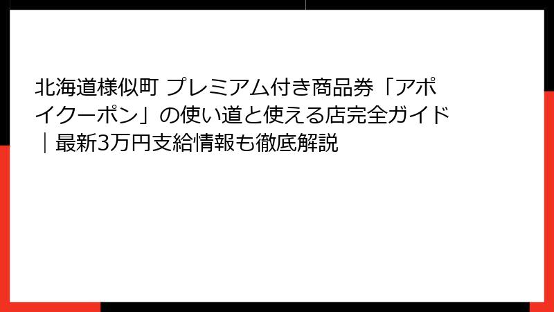 - 北海道様似町のプレミアム付き商品券「アポイクーポン」の概要と最新情報