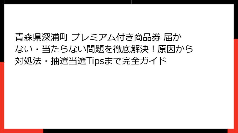 青森県深浦町 プレミアム付き商品券 届かない・当たらない問題を徹底解決!原因から対処法・抽選当選Tipsまで完全ガイド