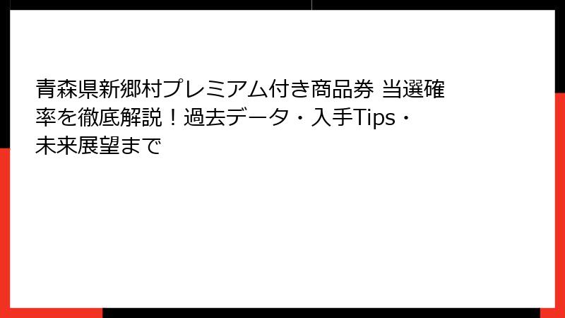 青森県新郷村プレミアム付き商品券の当選確率は、住民の生活に直結する重要な要素です。