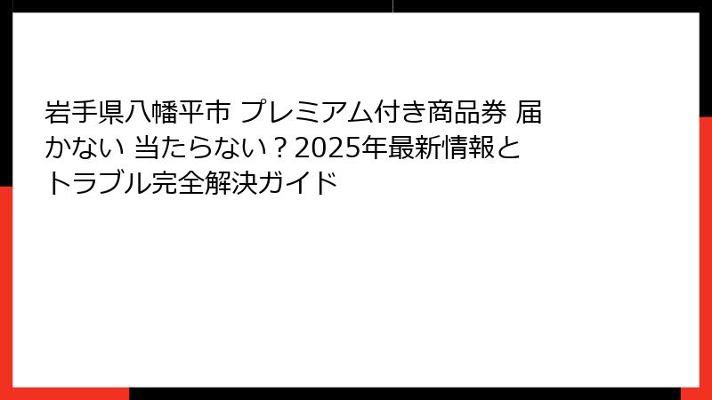 - 岩手県八幡平市のプレミアム付き商品券が届かない・当たらない? 2025年の最新情報とよくある疑問を徹底解説
