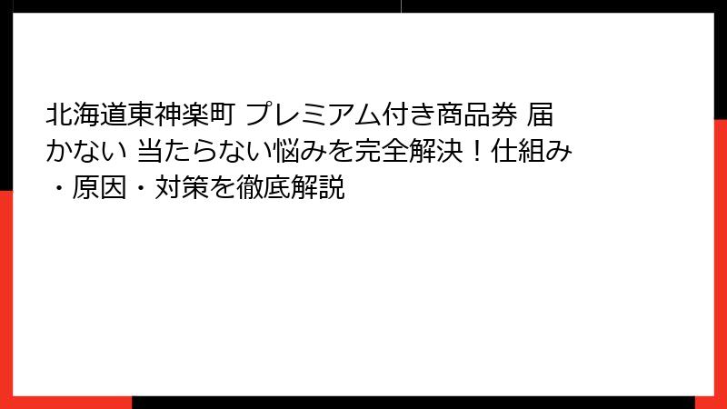 - 北海道東神楽町のプレミアム付き商品券が届かない・当たらない?よくある悩みと全体像を解説