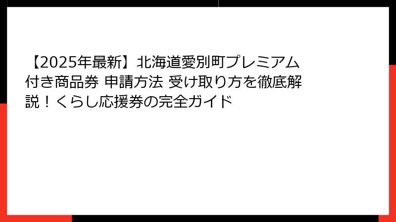 【2025年最新】北海道愛別町プレミアム付き商品券 申請方法 受け取り方を徹底解説!くらし応援券の完全ガイド