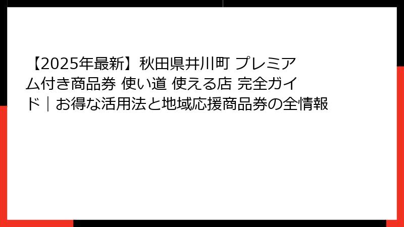 本記事では、秋田県井川町プレミアム付き商品券の基本的な概要から歴史的背景、2025年の最新情報、そして購入や配布方法までを徹底的に解説します。