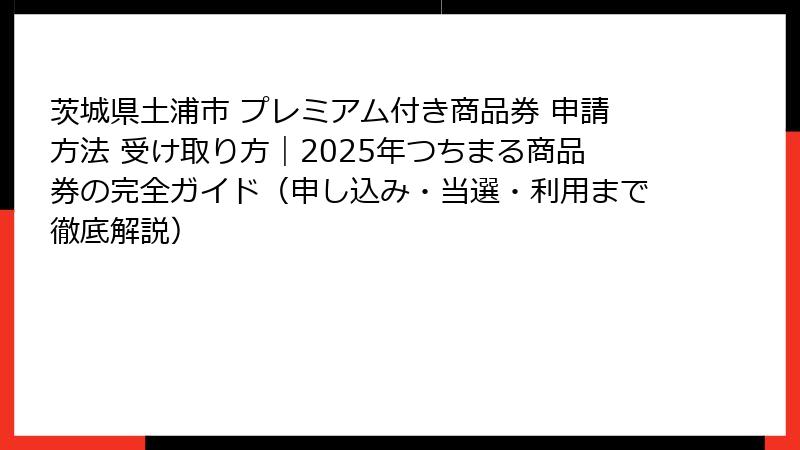 茨城県土浦市 プレミアム付き商品券 申請方法 受け取り方|2025年つちまる商品券の完全ガイド(申し込み・当選・利用まで徹底解説)