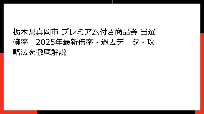 この記事では、栃木県真岡市プレミアム付き商品券の当選確率を徹底的に解説し、その概要から人気の秘密までを深掘りしていきます。