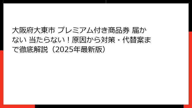- 当選したのに届かない!大阪府大東市プレミアム付き商品券の配送トラブル原因と即効対策