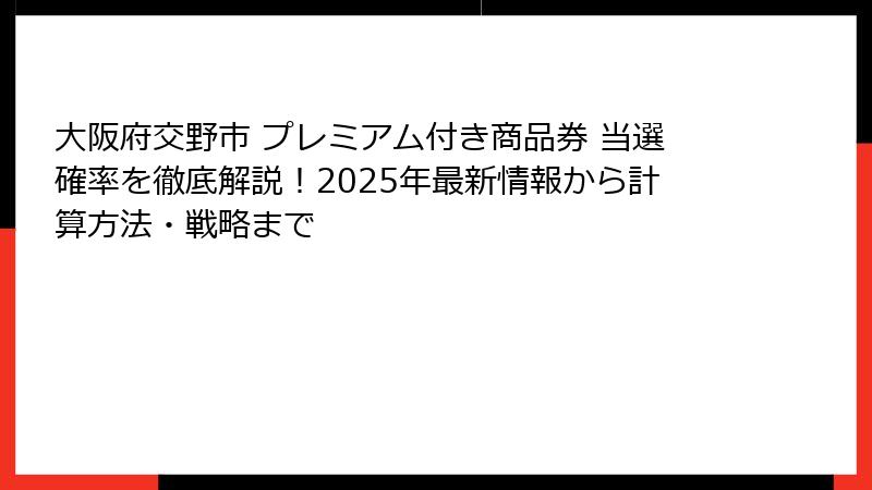 これにより、読者の皆さんが大阪府交野市のプレミアム付き商品券の当選確率を最大化するためのヒントを得られるはずです。