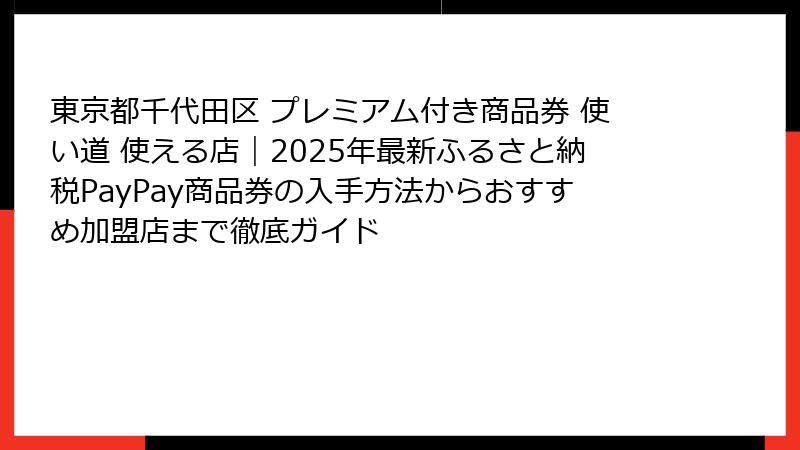 この記事では、東京都千代田区のプレミアム付き商品券について、詳しく掘り下げていきます。