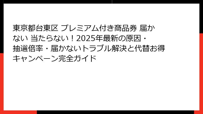- 東京都台東区のプレミアム付き商品券が届かない・当たらない!2025年最新の原因と解決策を徹底解明