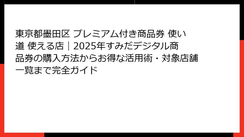 - 東京都墨田区のプレミアム付き商品券とは?概要と魅力的なメリットを徹底解説
