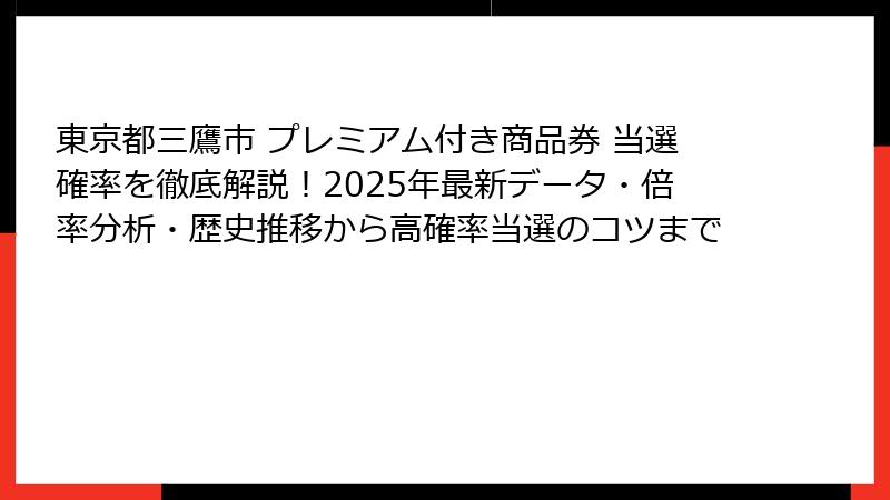 - SEOキーワード: 三鷹市プレミアム商品券当選確率。