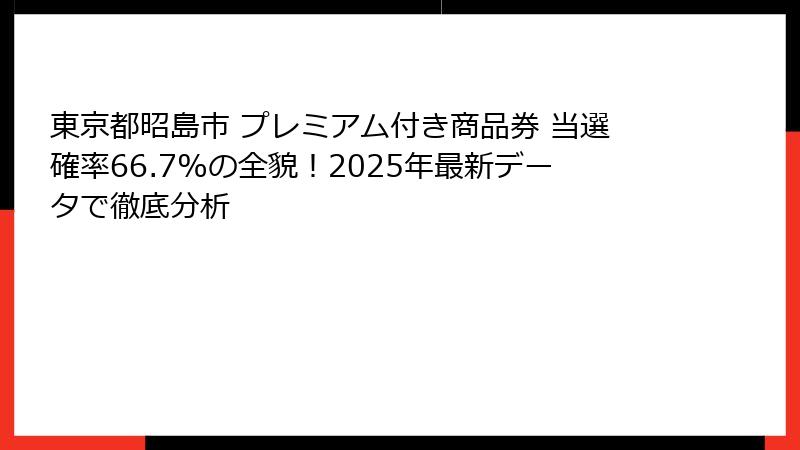 この記事では、プレミアム付き商品券の基本的な知識から、昭島市独自の魅力、そしてその当選確率に繋がる背景までを徹底的に解説します。