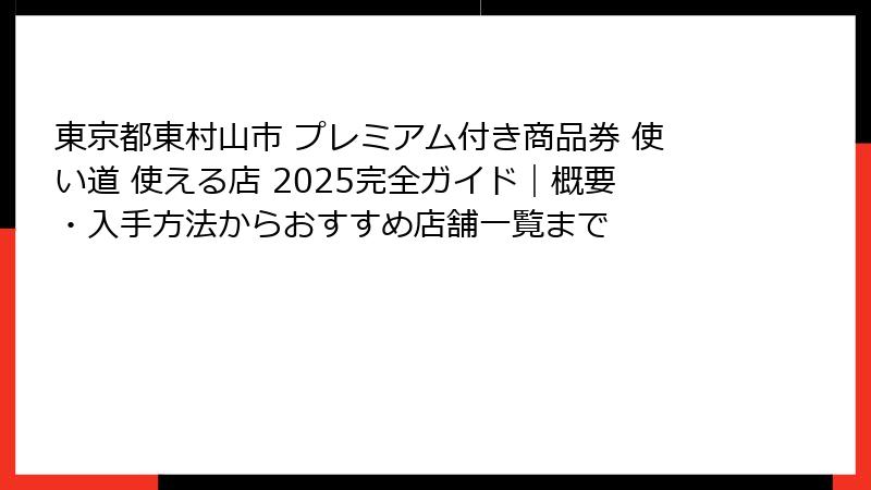 - 東京都東村山市のプレミアム付き商品券2025とは?概要と入手方法を徹底解説