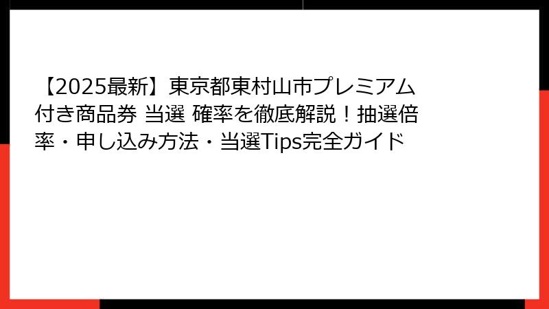 - 東京都東村山市プレミアム付き商品券の当選確率は?過去の抽選倍率と2025年予測