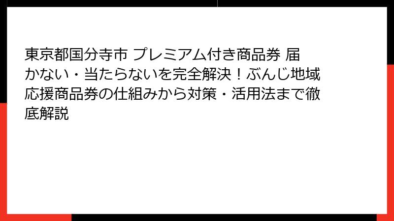 - 東京都国分寺市のプレミアム付き商品券が届かない・当たらない!住民のリアルな悩みを徹底解剖