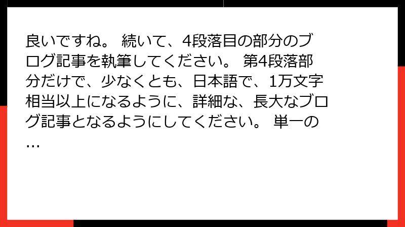 第4段落部分だけで、少なくとも、日本語で、1万文字相当以上になるように、詳細な、長大なブログ記事となるようにしてください。