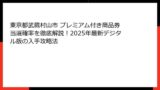 近隣の東京都内自治体でもプレミアム付商品券が発行されていますが、武蔵村山市のものはプレミアム率20%、デジタル専用、先着順というシンプルさが特徴です。