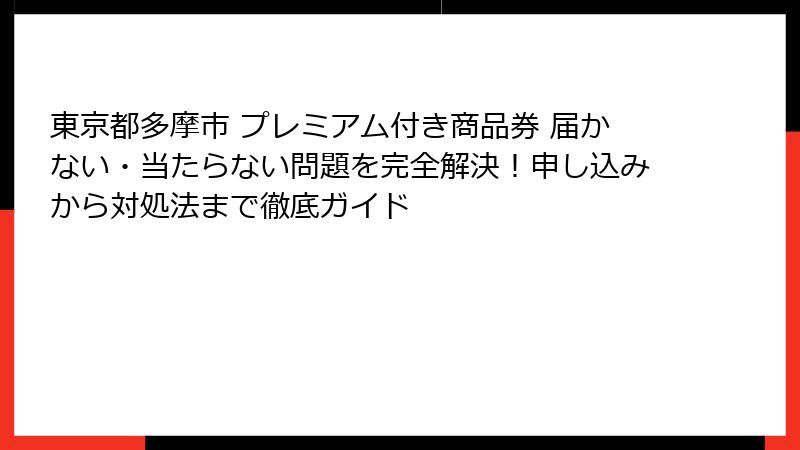 追加考察: キーワード「東京都多摩市 プレミアム付き商品券 届かない 当たらない」のSEO効果で、検索上位を目指す。