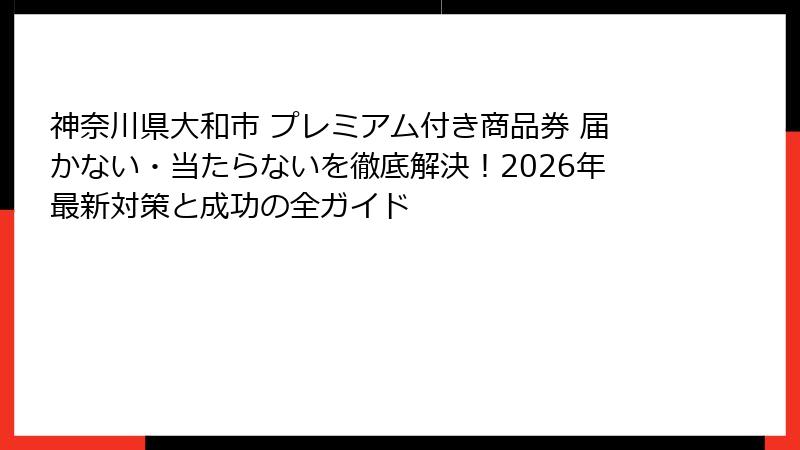 神奈川県大和市 プレミアム付き商品券 届かない・当たらないを徹底解決!2026年最新対策と成功の全ガイド