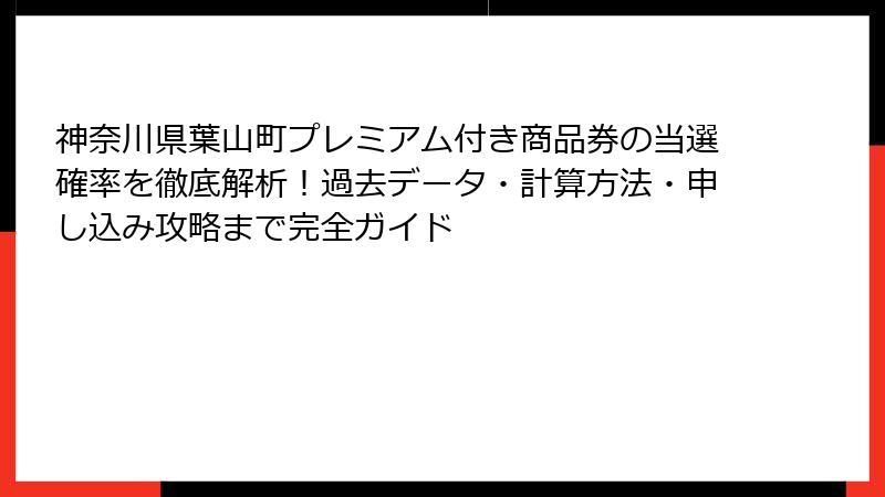 この商品券は、通常の額面以上に価値が付加されるプレミアム率が魅力で、神奈川県葉山町プレミアム付き商品券の当選確率についても関心が高まっています。