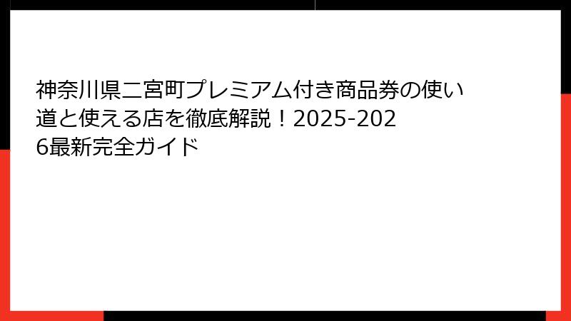 これにより、神奈川県二宮町プレミアム付き商品券を最大限に活用するための知識が得られるはずです。