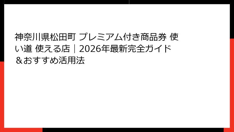 - 松田町プレミアム付き商品券の利用Tipsと注意点:お得に使うための実践ガイド