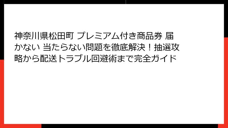 - 神奈川県松田町のプレミアム付き商品券が届かない・当たらない問題の全貌を徹底解説