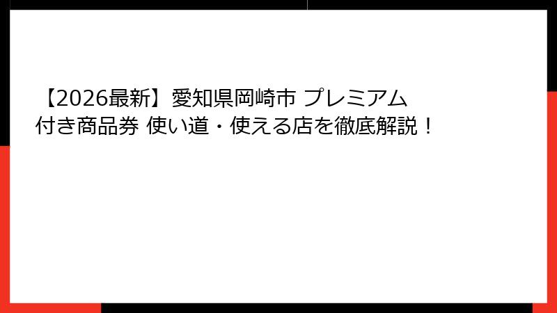 - 愛知県岡崎市のプレミアム付き商品券とは?基本情報と魅力的な使い道の概要