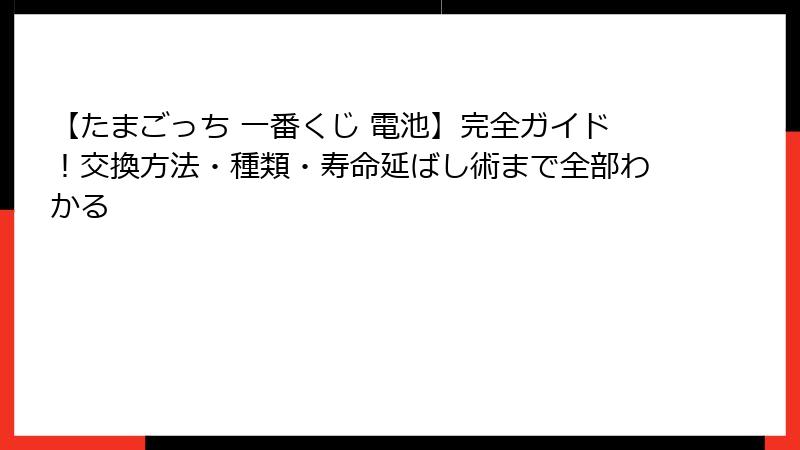 ここでは、電池の基礎知識を徹底的に解説し、たまごっち一番くじ電池の選び方や管理方法を掘り下げます。