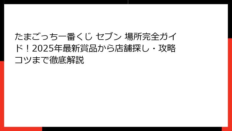「たまごっち 一番くじ セブン 場所」から始まる冒険を、ぜひ体験してください。