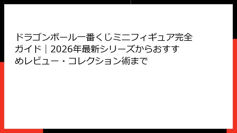 ドラゴンボール一番くじミニフィギュア完全ガイド|2026年最新シリーズからおすすめレビュー・コレクション術まで
