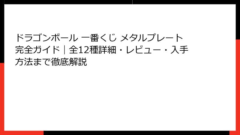 - ドラゴンボール一番くじメタルプレートの魅力とは? 人気の秘密を徹底解説