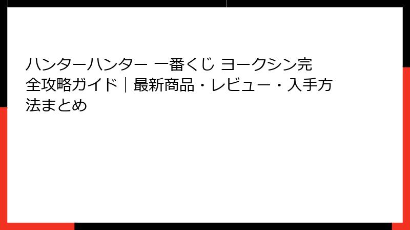 - ハンターハンター 一番くじ ヨークシンをゲットするための実践ガイドとレビュー