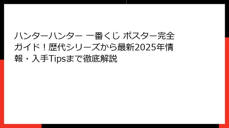 一番くじとは、バンダイナムコグループが展開するくじ引き形式のグッズ販売で、ハンターハンターのキャラクターや名シーンをモチーフにしたポスターが景品として登場し、ファンを魅了してきました。