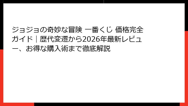 - 2026年最新ジョジョ一番くじの価格と景品徹底レビュー