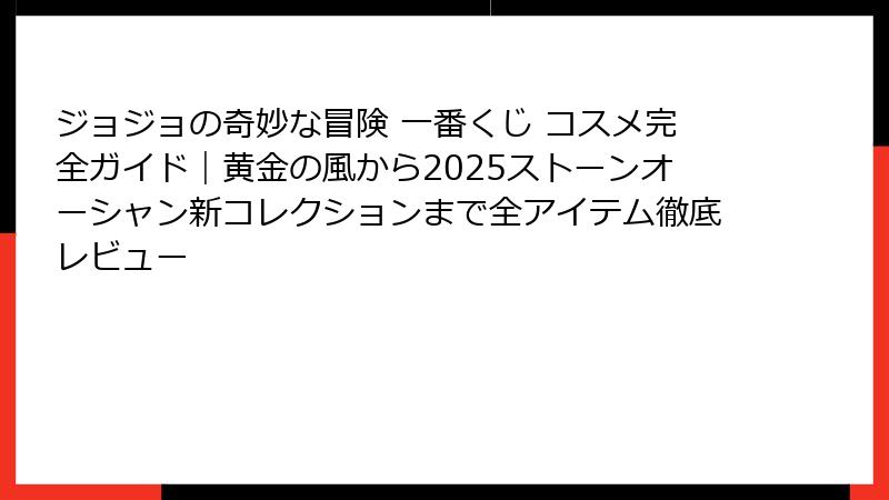- 最新2025年発売!ジョジョの奇妙な冒険 ストーンオーシャン 一番くじ コスメ 新コレクションの全貌と攻略法