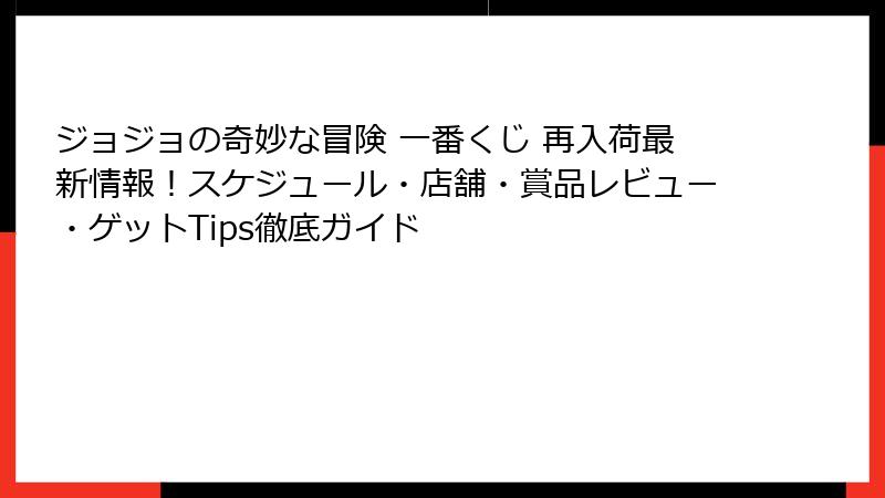 - ジョジョの奇妙な冒険 一番くじ 再入荷スケジュールと取扱店舗の徹底ガイド