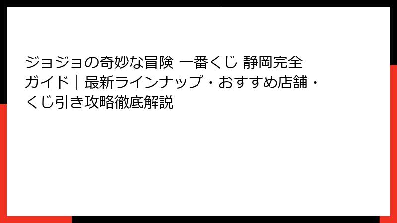 ジョジョの奇妙な冒険 一番くじ 静岡完全ガイド|最新ラインナップ・おすすめ店舗・くじ引き攻略徹底解説