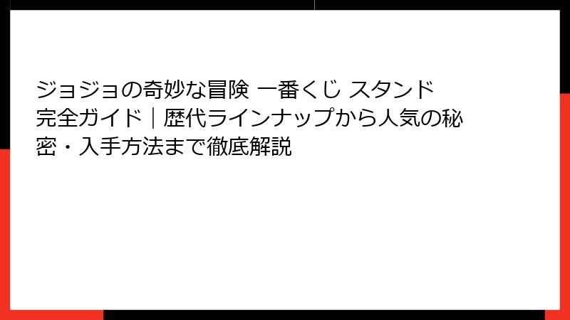 - ジョジョの奇妙な冒険 一番くじ スタンドの魅力とは? ファン必見の導入ガイド