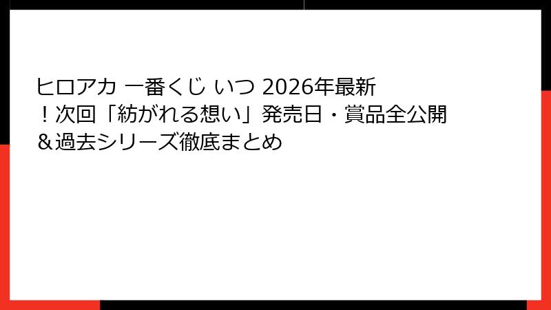 ヒロアカ 一番くじ いつ 2026年最新!次回「紡がれる想い」発売日・賞品全公開&過去シリーズ徹底まとめ